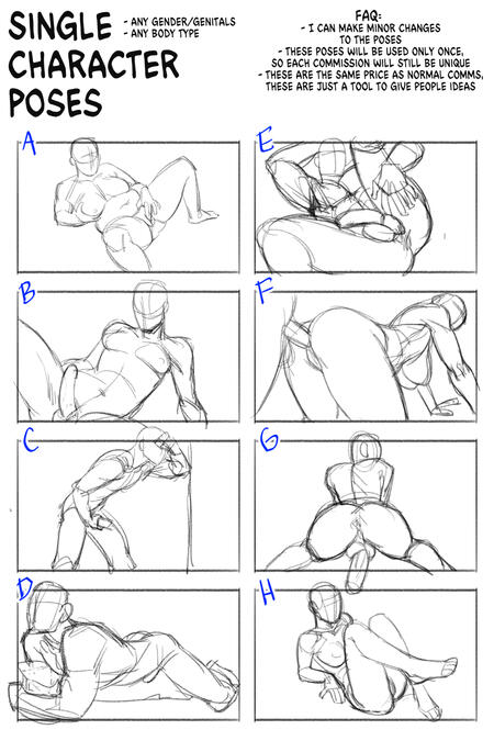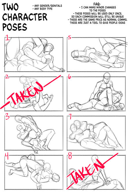 Want to get a commission, but not sure where to start with poses? See below! I've compiled a collection of NSFW single and two character poses for you to use.